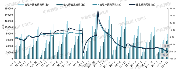 02.供应:1-11月房地产开发投资额同比下降15.9%